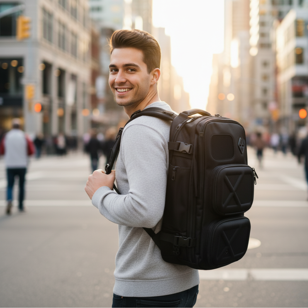 Endlich ein Rucksack, bei dem Sicherheit nicht nervt.“ — Fabian, Frankfurt“